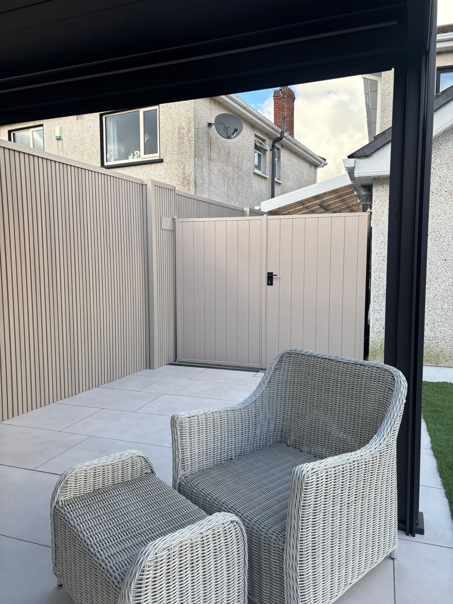 Carton Gates manufacturer and install box section steel gates with maintenance free composite infill boards.